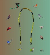 世界中の鳥の配色からカラーをデザインしたショルダーストラップです。使い方は様々で、スマホや財布、カメラなどに付けて使用できます。